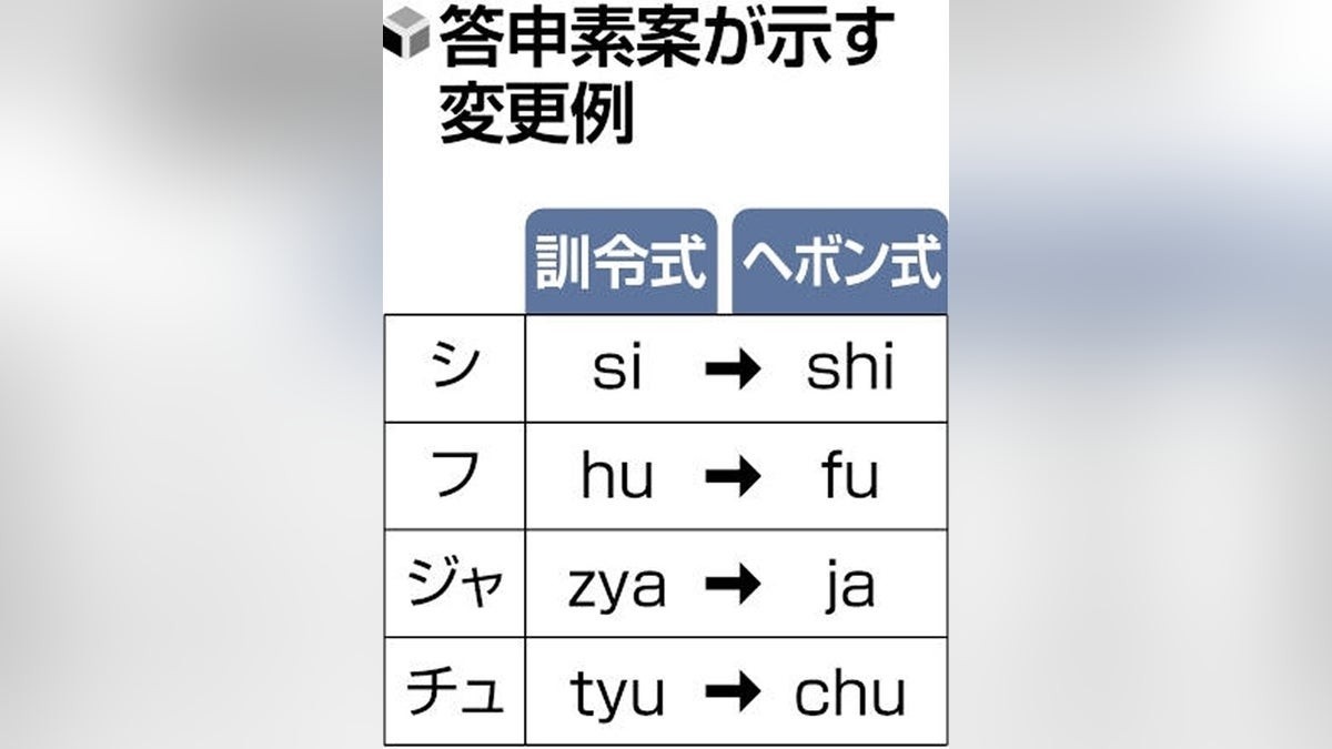 ローマ字の統一的な表記を検討してきた文化庁は、英語の発音に近い「ヘボン式」を基本とする答申素案をまとめた。20日に開かれる文化庁の文化審議会小委員会に示す。審議会は今年秋にも文部科学相に答申する見通し。ローマ字表記は「訓令式」を基本とした1954年の内閣告示は、約70年ぶりに変更されることになる。