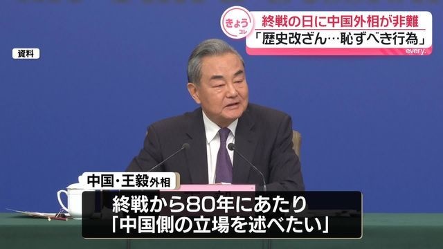 終戦記念日の15日、中国の王毅外相は、日本について、「一部の勢力が侵略を否定し、歴史を改ざんしている」と非難しました。
