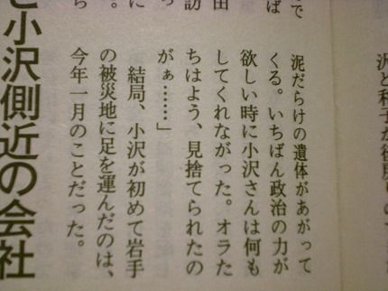 ところが三月十一日、大震災の後、小沢の行動を見て岩手、国の為になるどころか害になることがはっきりわかりました。