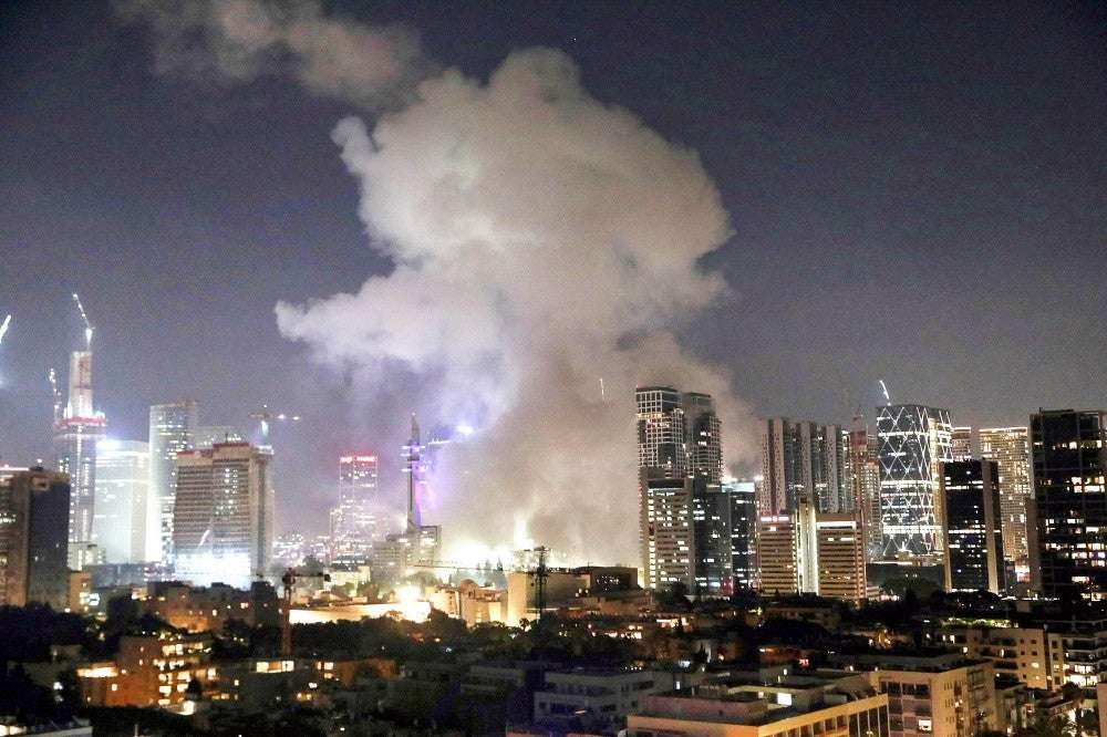 テルアビブとエルサレムのCNN取材班は攻撃中、大きな爆発音を聞いた。テルアビブからの映像には、飛来するロケット弾や高層ビルの間に立ち上る煙が映っている。