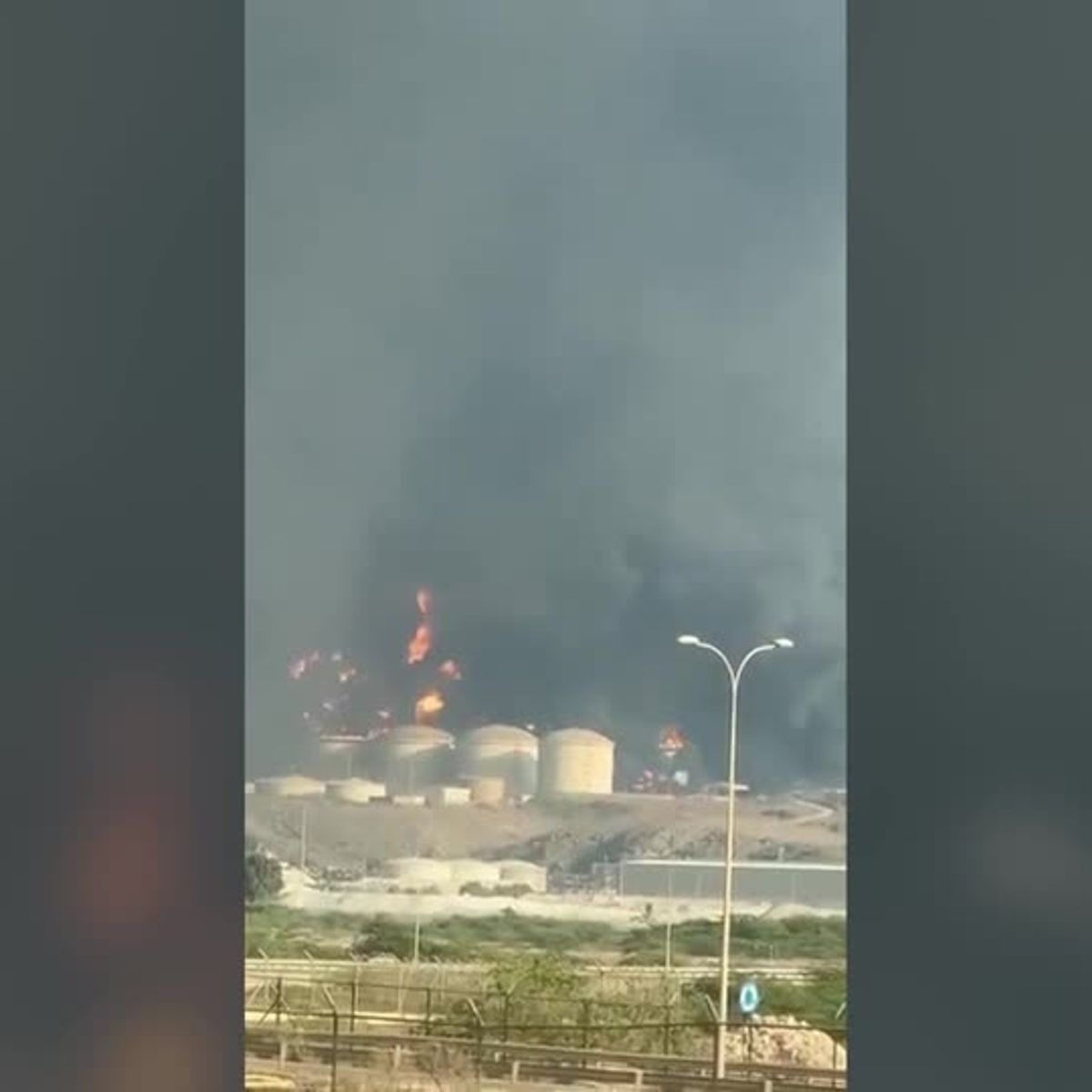 オマーン南部の石油貯蔵施設にドローン攻撃、炎上 イラン大統領が調査を約束(字幕・12日)