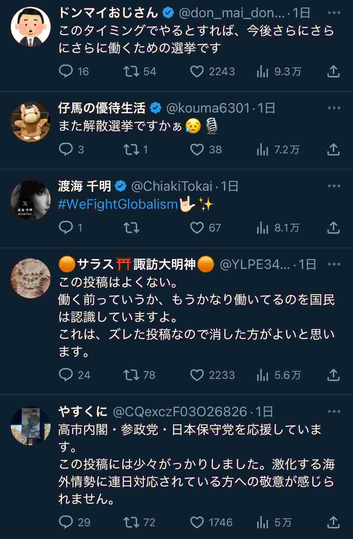 【キチゲェ馬鹿ウ.ヨ大激突】参政党「働いて働いて働いて働いて働く前に総選挙ですか」の高市批判を皮切りにネ.ト.ウ.ヨ同士の大バトルが開始! ワイ「トー儲ネ.ト.ウ.ヨは自参のどちらに投票するの?」