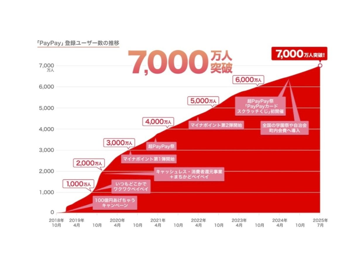 スマートフォン決済サービス「PayPay」は7月15日、登録ユーザー数が7000万人を突破したと発表した。