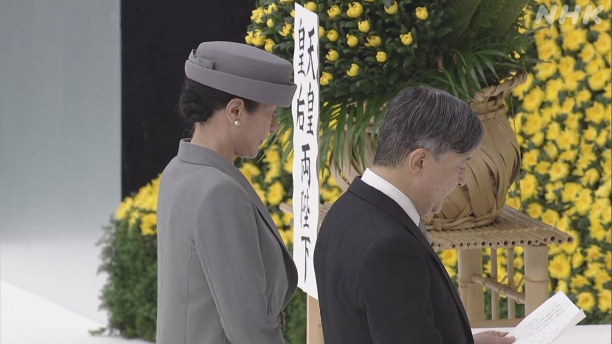 - 「戦後の長きにわたる平和な歳月に思いを致しつつ、過去を顧み、深い反省の上に立って、再び戦争の惨禍が繰り返されぬことを切に願い、戦陣に散り戦禍に倒れた人々に対し、全国民と共に、心から追悼の意を表し、世界の平和と我が国の一層の発展を祈ります」