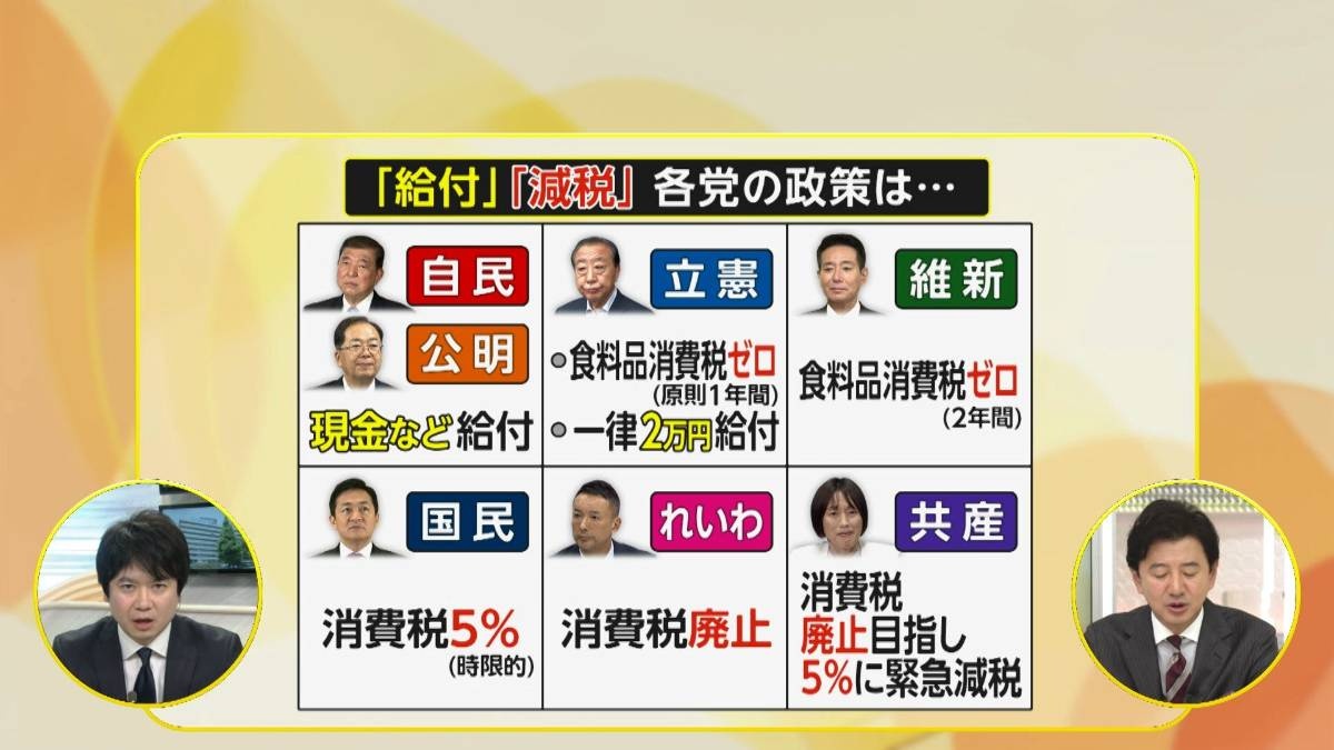 確かに与党は4月にいったん見送ったわけですけど、その後、野党各党が消費税の減税策というものを一気に打ち出しました。これを受けて何が起きたかといいますと、選挙を控える自民党の参議院議員らから何も打ち出さずには戦えない、つまり何かやってほしいという声が大きく上がったんです。その結果、野党の減税に対抗する政策として税率を変える手間がない、即効性がある給付が良いという方向に傾いたというわけです。