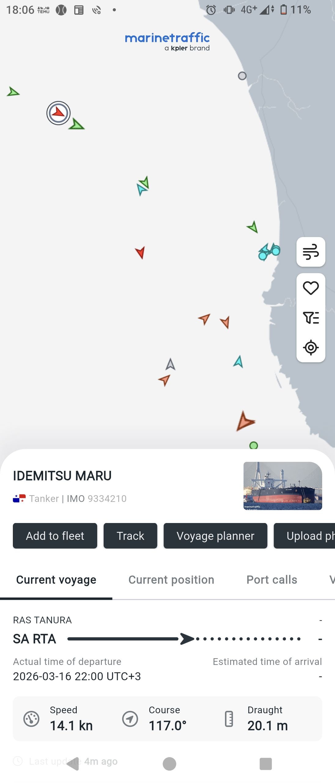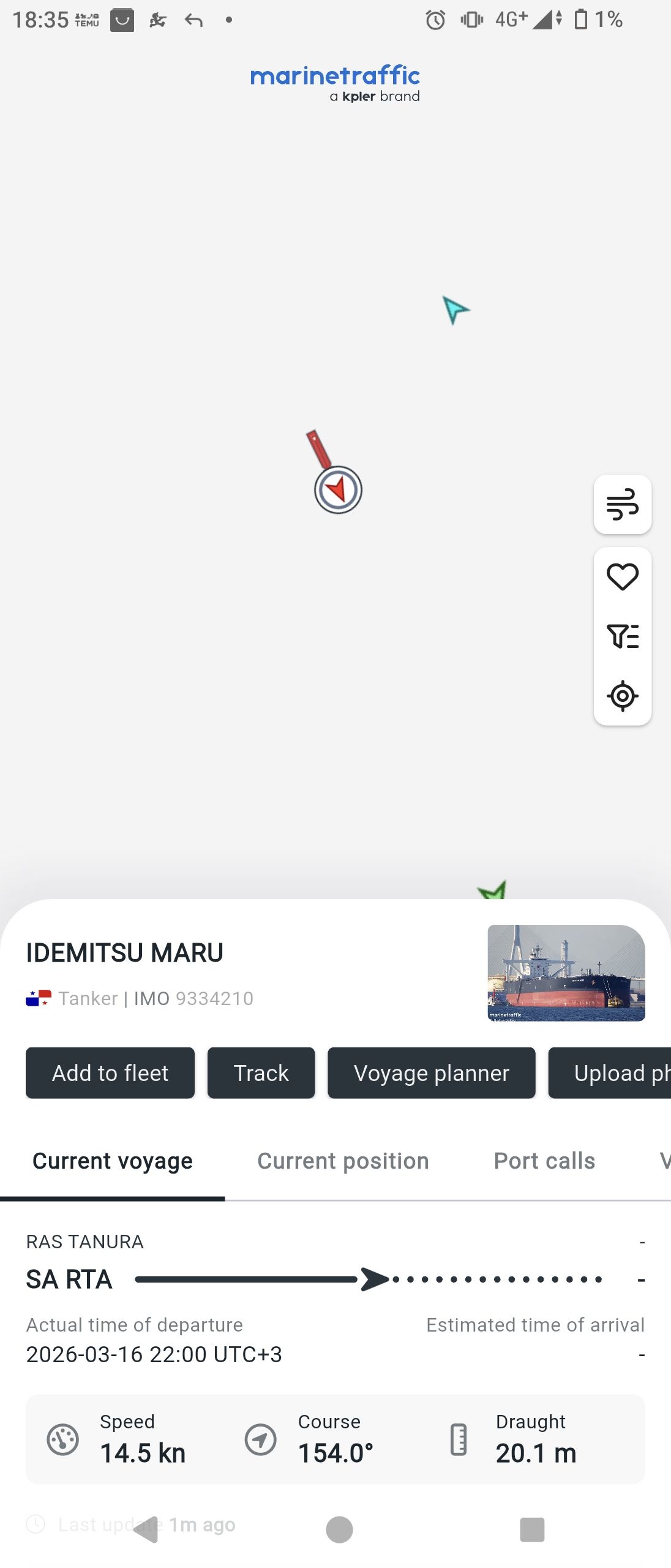 https://www.marinetraffic.com/en/ais/home/shipid:413092/zoom:10出光丸はサウジにある中東最大の石油精製所ラスタヌラ港で原油を積んでます