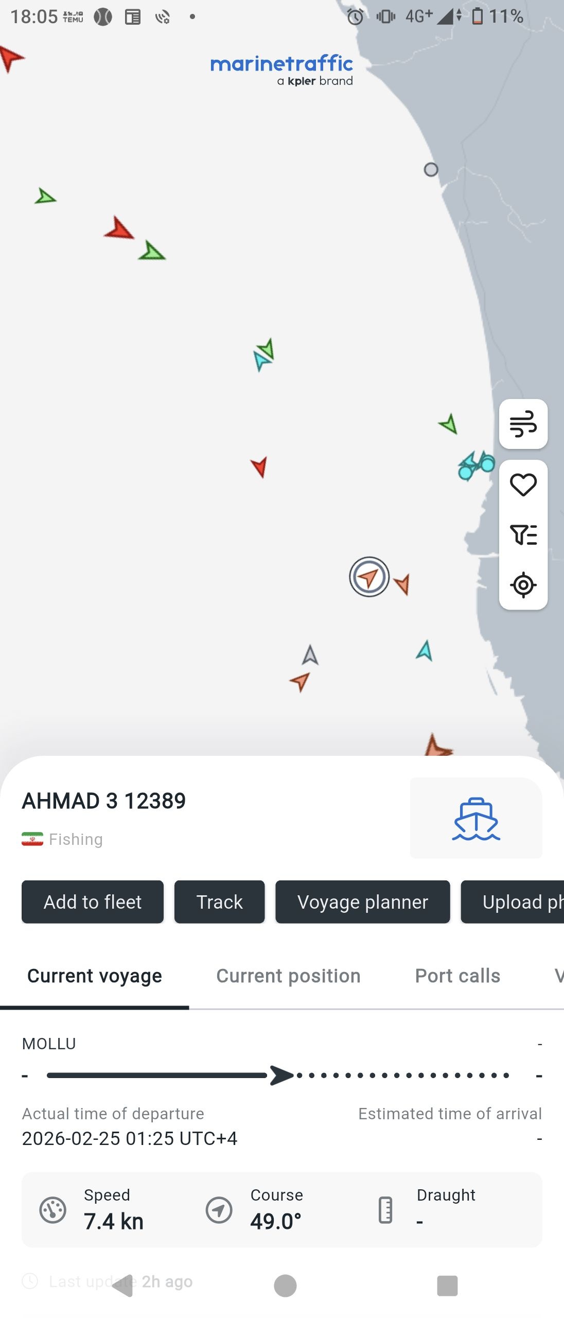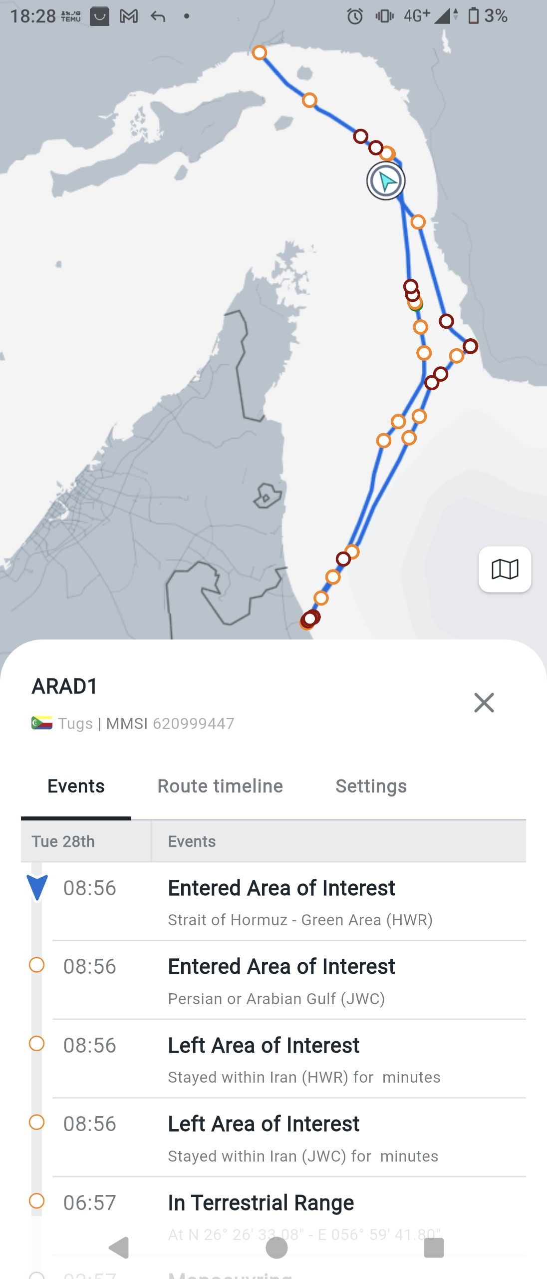 - まえMSCの貨物船がイランに捕まったあたりを通過できるかが最後の難関、怪しいイラン漁船が待機してる