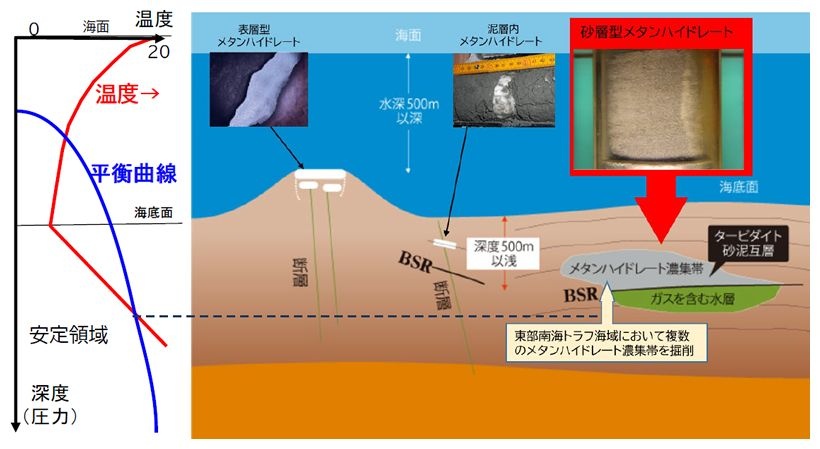 日本のメタンハイドレート開発は、主に経済産業省(資源エネルギー庁)主導の国家プロジェクト「砂層型メタンハイドレートの研究開発事業」