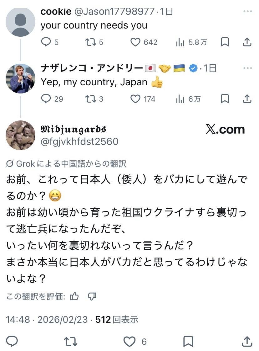ナザレンコはだから、海外のウヨからクソミソに言われて当たり前の存在