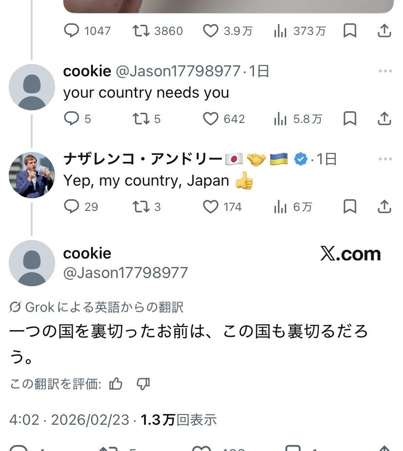 ナザレンコがイキって英語やキリル文字でポストしたのが引き金になったんじゃないかな