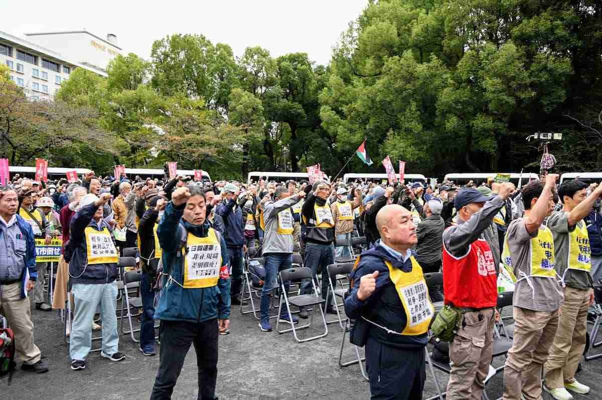 高市早苗政権打倒を目指す人々による「11・2全国労働者総決起集会/改憲・戦争阻止1万人大行進」が2日、芝公園(東京都港区)で開かれ、2150人(主催者発表)が集まった。