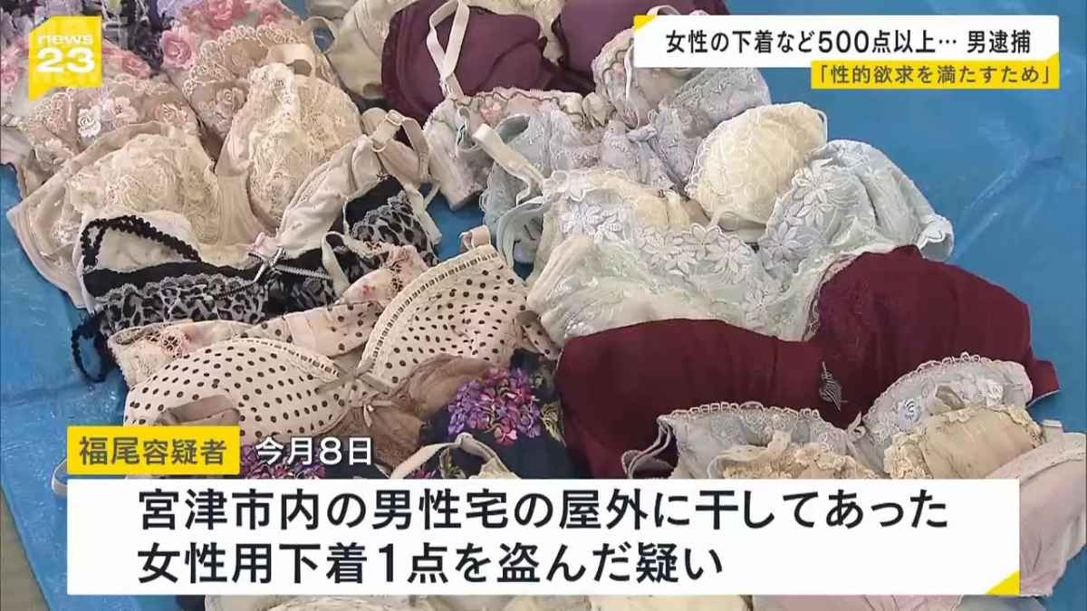 女性用下着を盗んだとして逮捕された男、自宅から500点以上の下着や制服が押収されました。