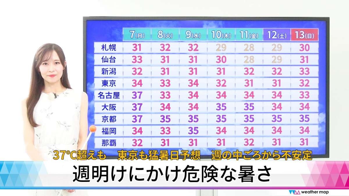 【動画解説】週明けにかけ危険な暑さ 東京も猛暑日予想 7日は40℃近い所も