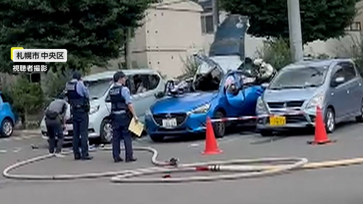 北海道・札幌市中央区の駐車場で車が爆発し、2人がけがをしました。