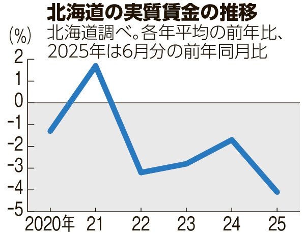 【北海道の実質賃金4%減】1年3カ月ぶりの落ち込み幅…長引く物価高、実質的な賃金の目減りが続く