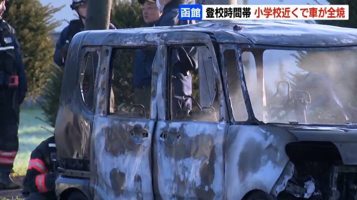 【北海道函館】「走行中にエアコン辺りから煙」小学校近くで軽乗用車が炎上 登校時間帯で一時騒然 乗っていた2人は逃げて無事