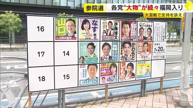 参院選福岡選挙区には主要政党すべてが候補を擁立していて、比例での得票もめざし、各党が街頭で支持の訴えに力を入れました。