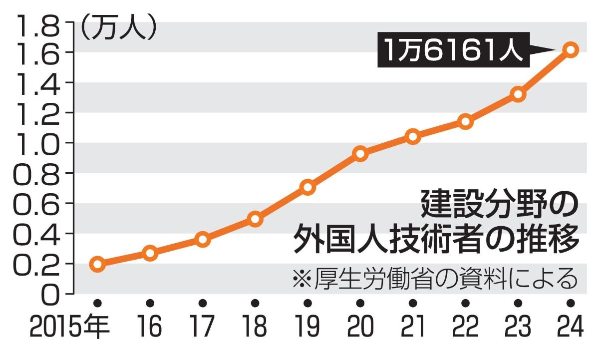 国内の建設分野で働く外国人技術者は2024年までの10年間で8倍超の1万6161人に増えたが、不慣れな職場環境や仕事のギャップから短期で退職して帰国するケースも珍しくない。