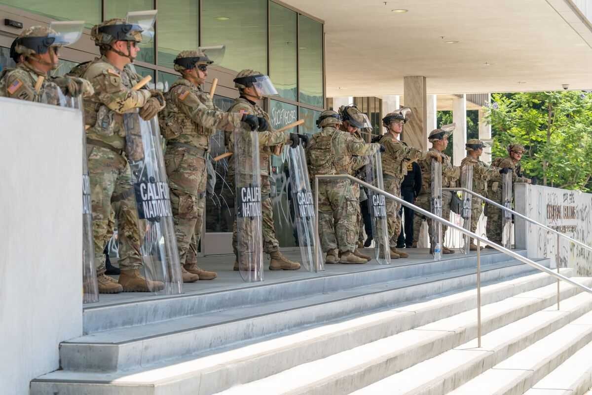 最近ではトランプ氏の大統領1期目の2020年、ジョージ・フロイドさんが白人警官に殺害された後、ミネアポリスで起きた抗議活動の制御目的で、複数の州知事が州兵動員を容認した。