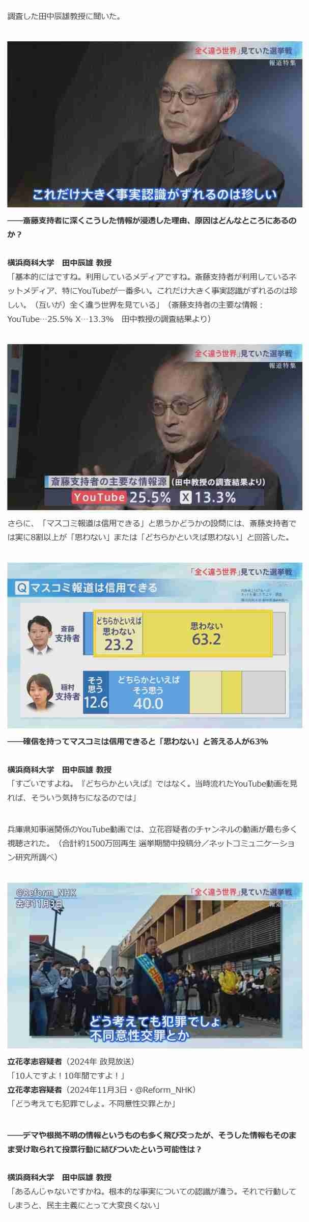 【報道特集】斎藤元彦支持者「パワハラ報道はマスコミの捏造70.3%」「マスコミは信用できない86.4%」「情報源はYouTube」