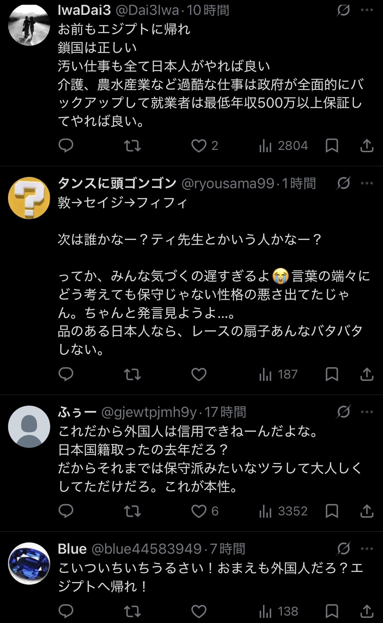 帰化なんかしてもガチのレイシストは元エジプト人なんて日本人として認めないよ