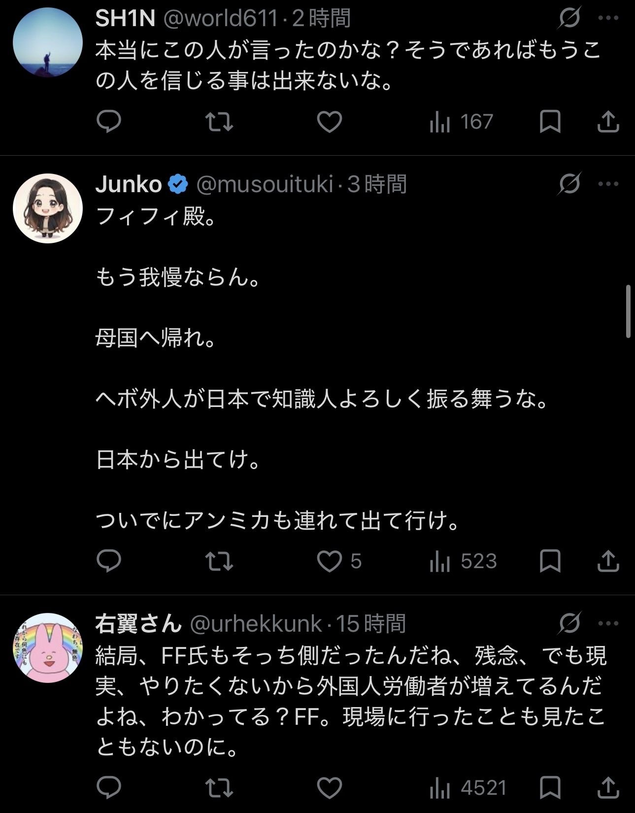 ここからネトウヨの排外主義の対象に「自分自身」がなったフィフィ↓