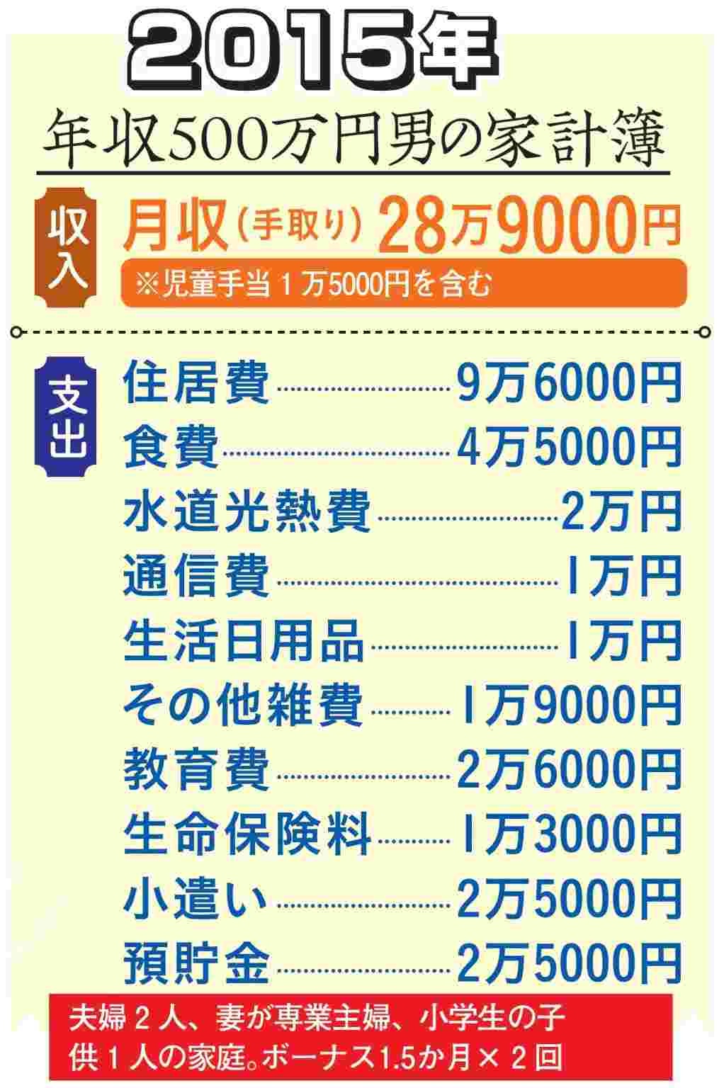 増税、社会保険料の引き上げにより、同じ年収500万円でも、10年前は28万9000円だった手取り月収が、現在28万円にまで目減り。