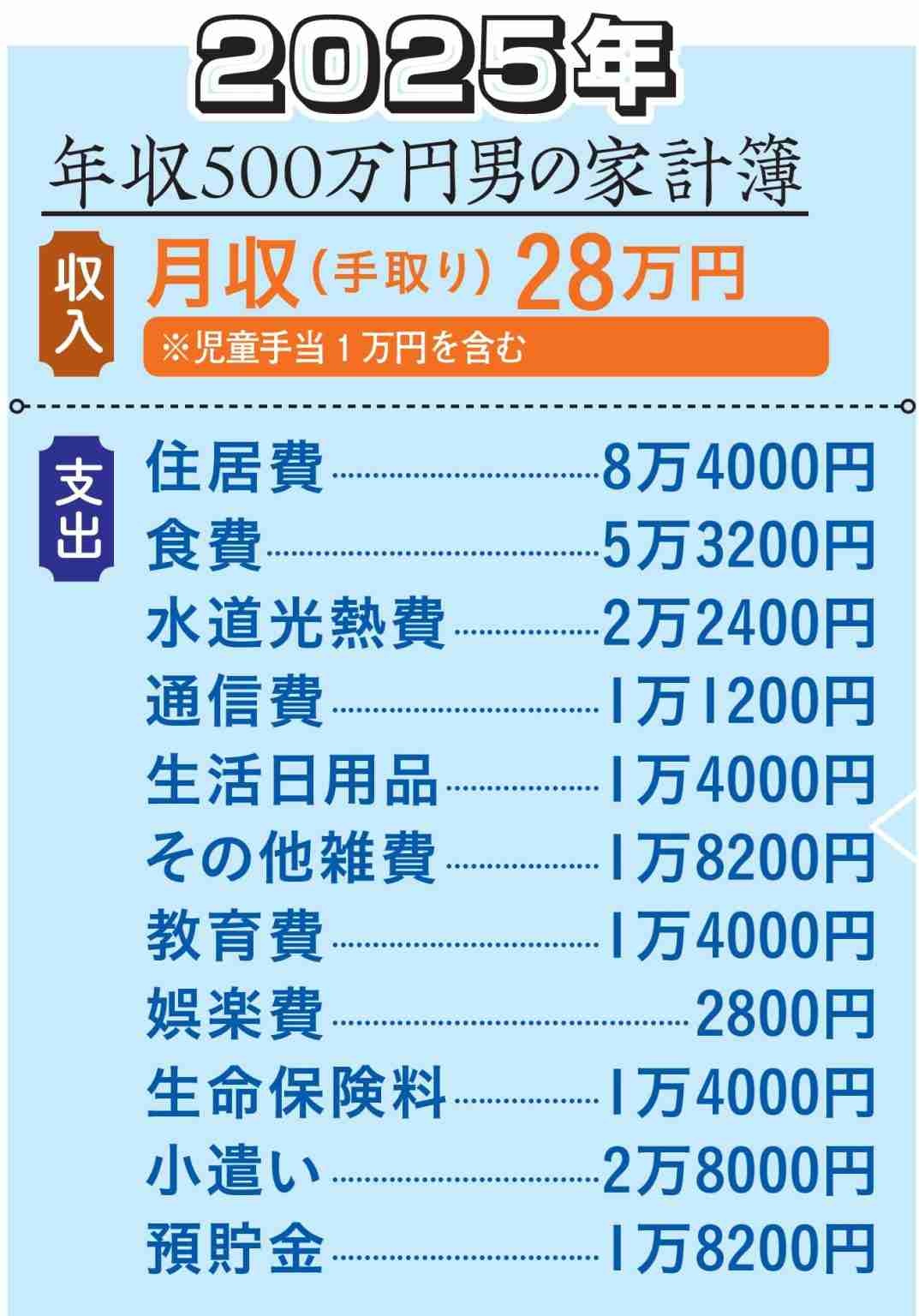 また、物価高による食費、水道光熱費など固定費等の増大で、生活に必要な最低限の費用を除くと、預貯金できる金額は月1万8200円という惨状。年収500万円世帯の家計簿は火の車というのが実状だ。