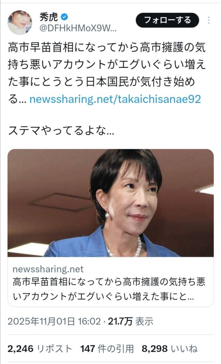 【復活した安倍ファシズム】日本のネット空間が「高市を批判した有名人をジサツするまで追い詰めろ」に染まる ワイ「この統一した動きはいったいなんなんや?!」
