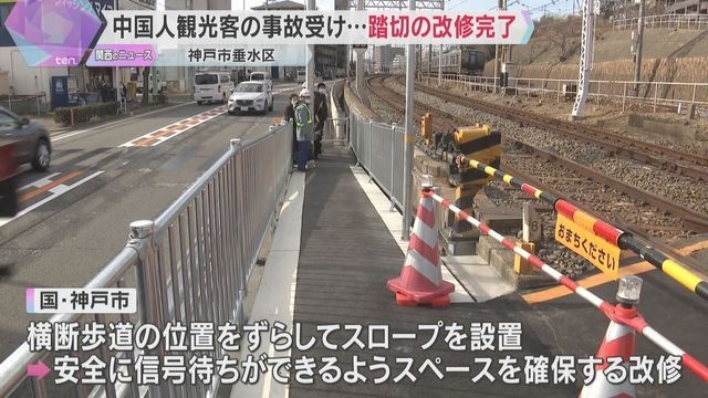 【政府】中国人観光客の踏切での死亡事故を受け、スロープを設置し歩行者の待機スペースを広げる改修工事完了