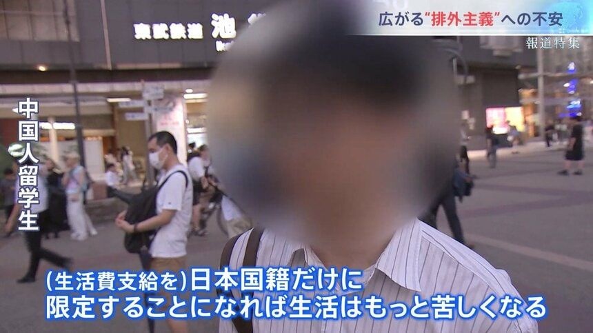 「私の周りにも生活に苦しんでる、バイトしながら大学院に通って、両立を頑張ってる留学生の友達がいる。(生活費支給を)日本国籍だけに限定することになれば、生活はもっと苦しくなる」男性は2019年に中国から来日。