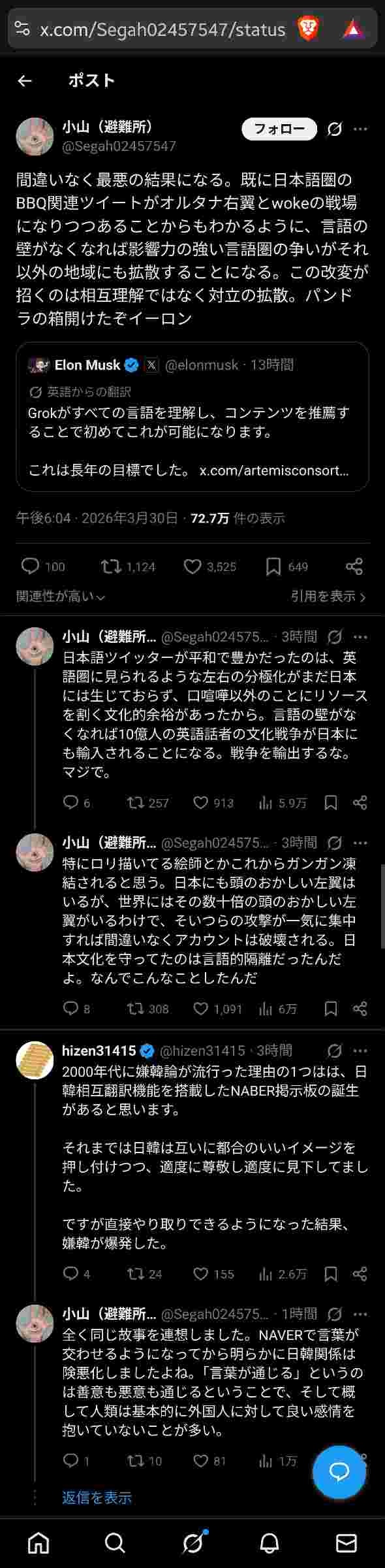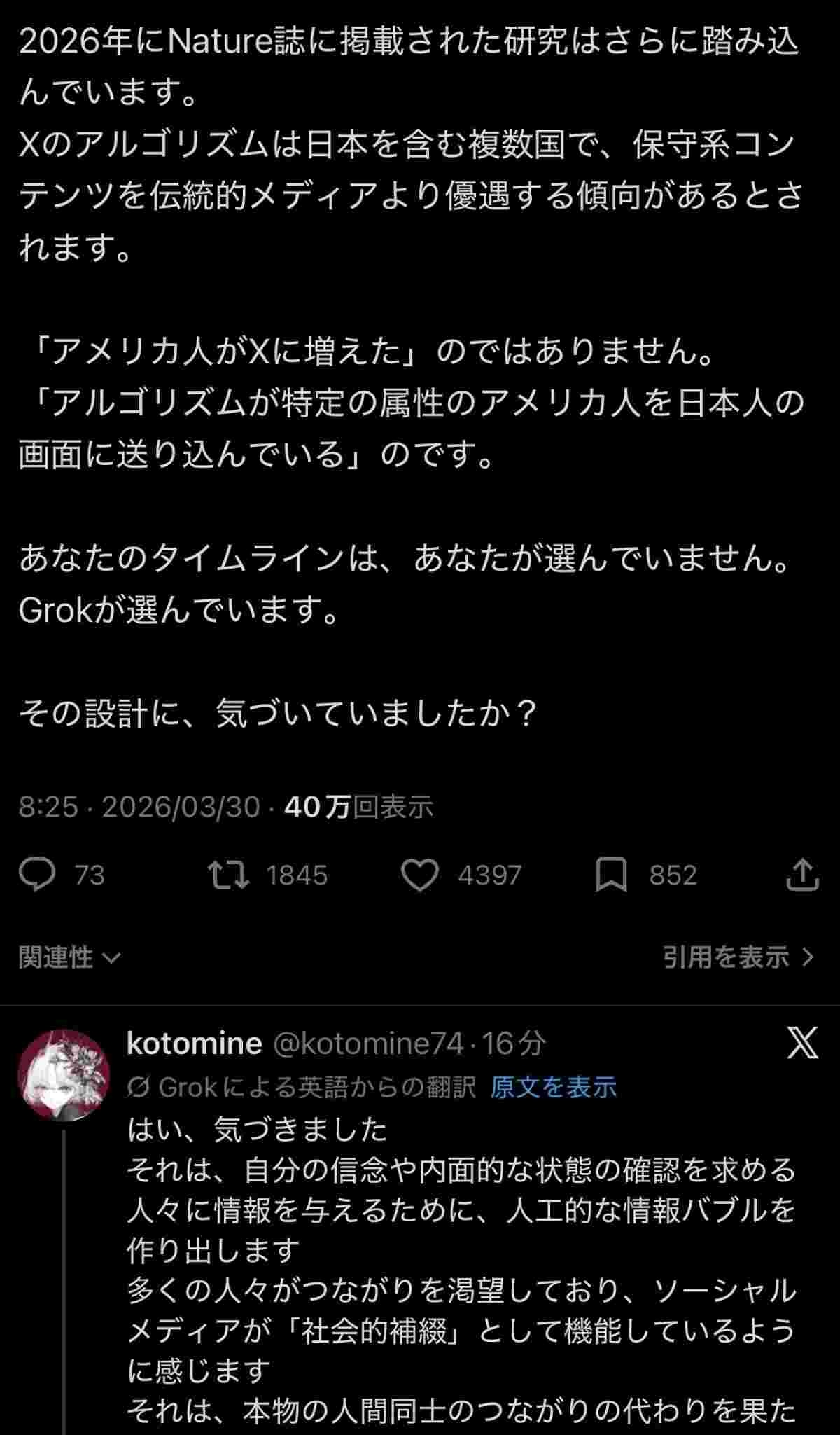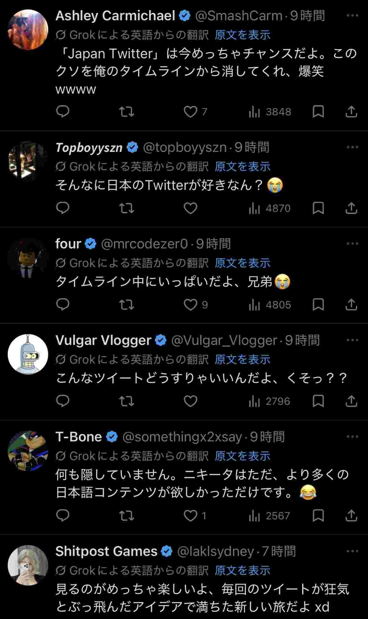 【日本のウヨバレ・キチゲェバレ】 Xで自動翻訳での国境越えアルゴリズムが実装された模様 とんでもないことが起き始める