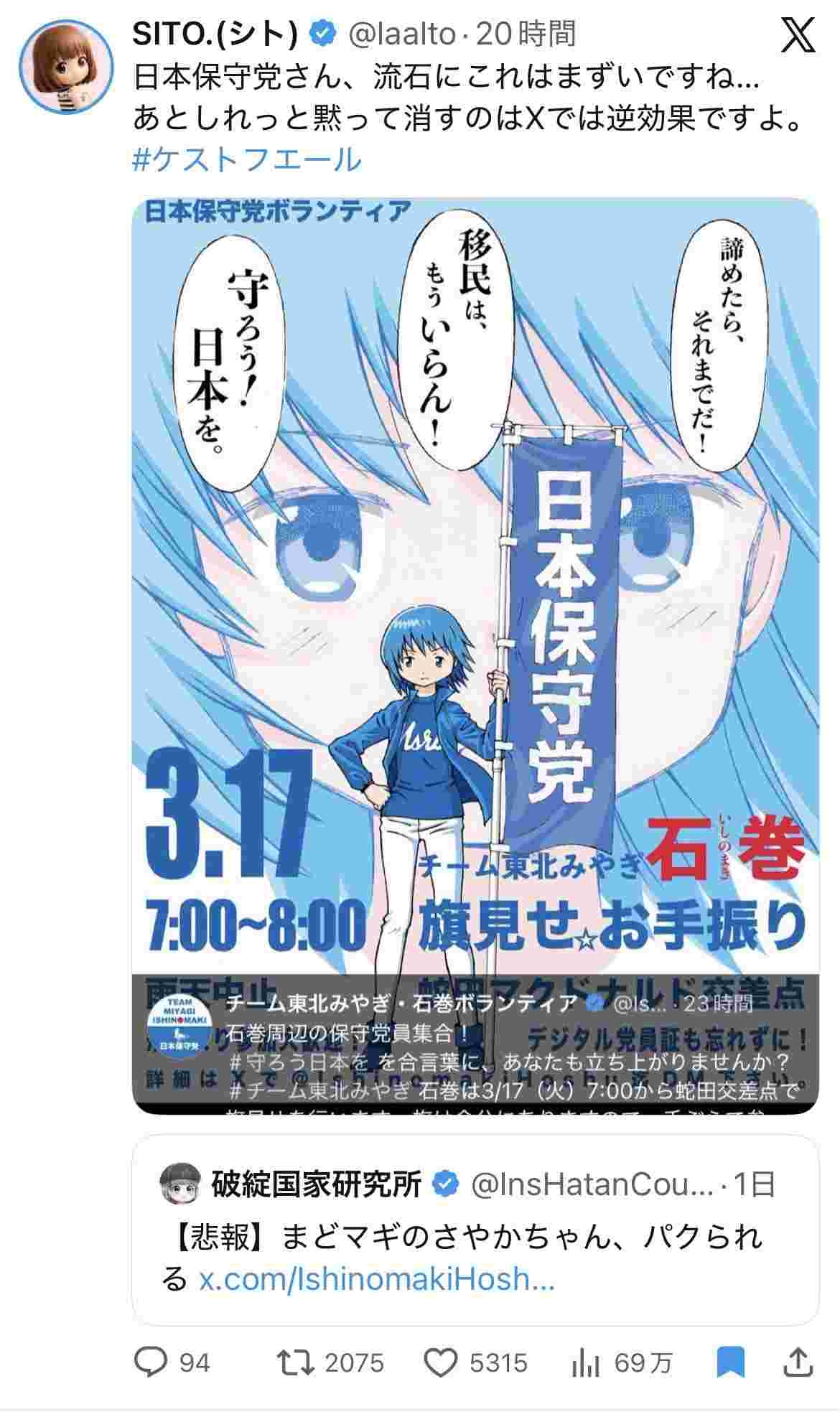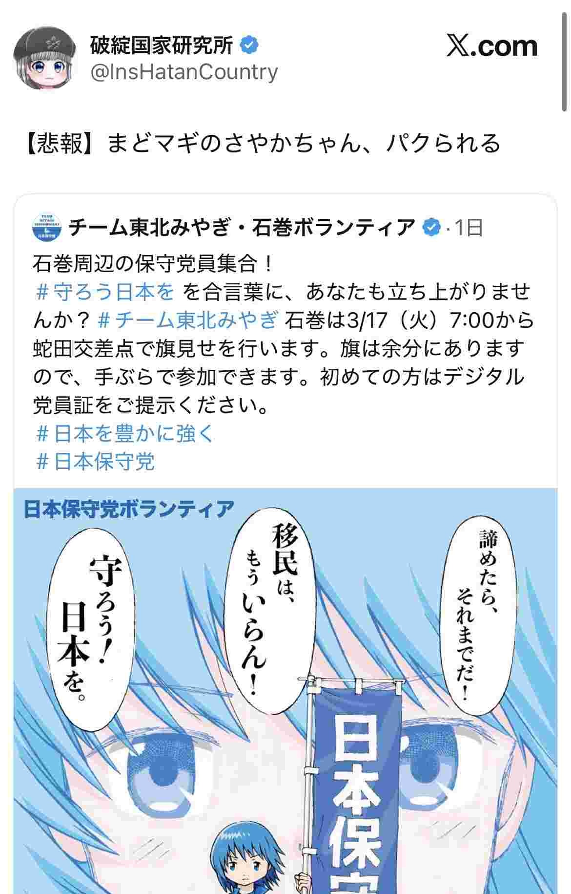 【日本保守党】まどマギで一番俺が好きな美樹さやかちゃんを勝手にレイシズム広告に使って大問題に