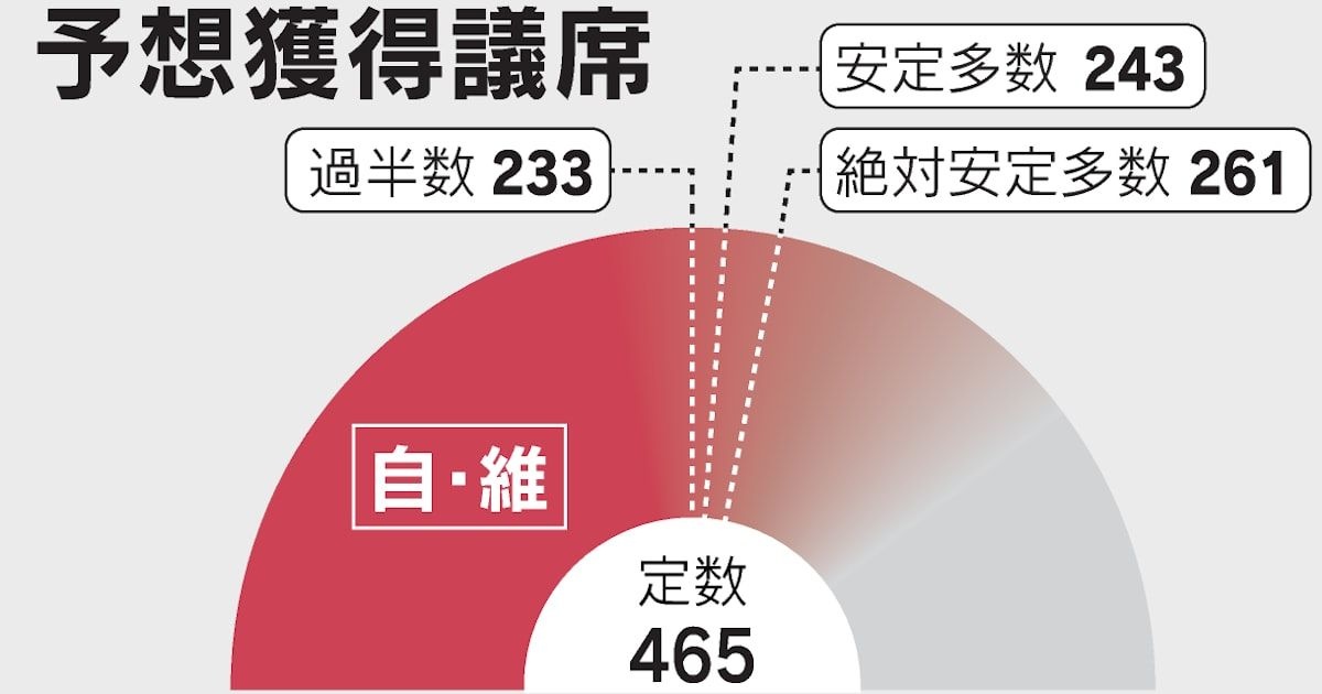 日本経済新聞社は8日投開票の衆院選について調査し、終盤情勢を探った。与党の自民党と日本維新の会が定数465のうち300を超える議席をうかがう。