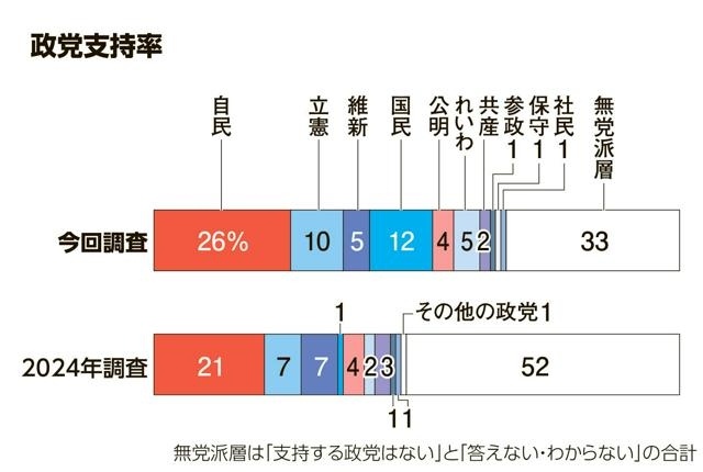 【朝日新聞全国世論調査】政党支持、1年経って様変わり…無党派層が激減、国民民主党の支持層が膨らんだ