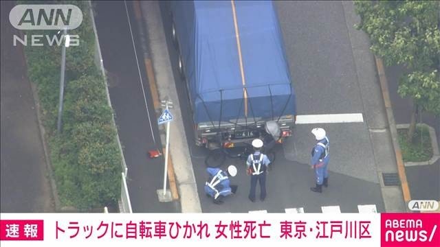 東京・江戸川区で、母親と娘が乗っていた自転車とトラックの事故がありました。
