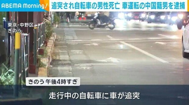 【東京】車に追突され自転車の男性死亡、運転の中国籍男を逮捕