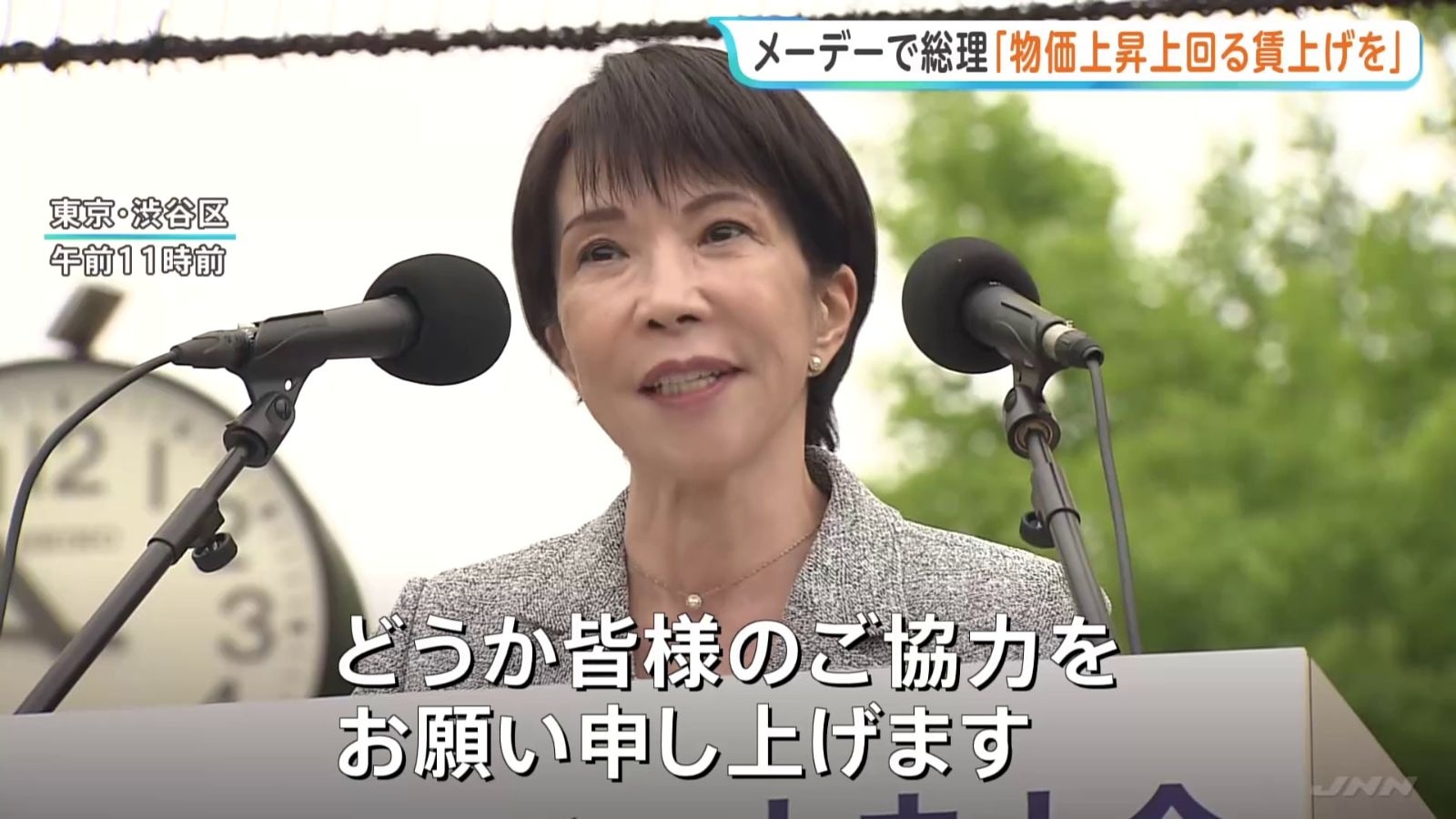 【東京】高市総理「物価上昇を上回る賃上げ実現に協力を」連合主催の「メーデー中央大会」に出席