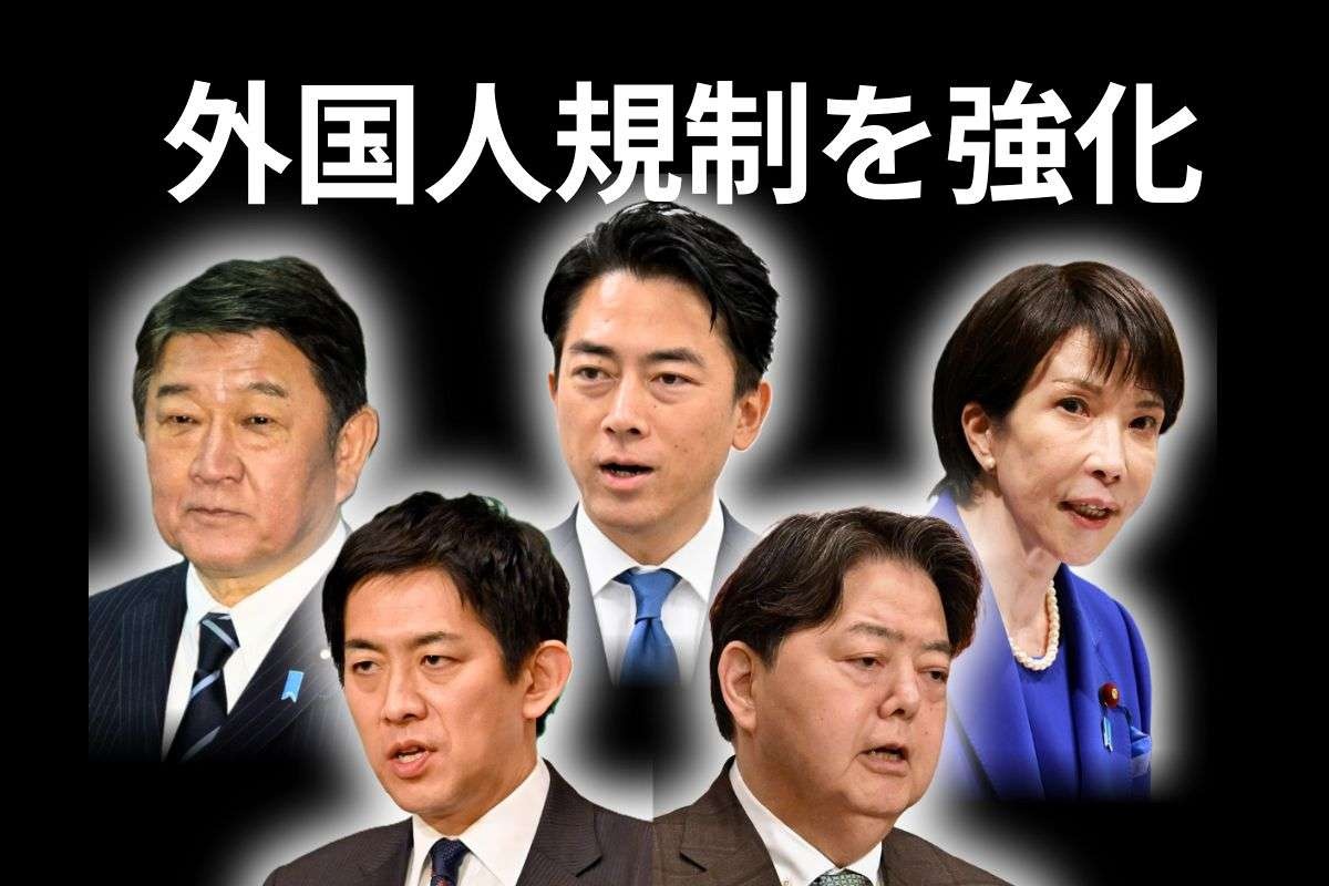 「参政党が外国人に強硬な姿勢を取る中で、『共生社会の実現』と言っただけで批判される」。自民党の閣僚経験者は、総裁選候補の発言が規制一辺倒になる背景について、こう解説した。
