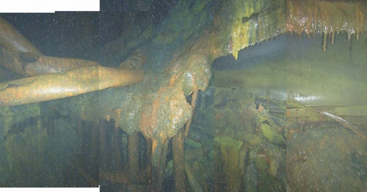 東京電力は19日、福島第1原発3号機の原子炉格納容器内を、小型ドローンで撮影した写真と動画の一部を公開した。格納容器内にあり、核燃料を収めていた鋼鉄製の圧力容器の底部に穴が開いている様子が、事故後初めて明らかとなった