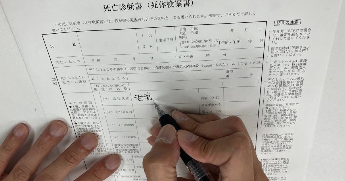 「死亡診断書に『大往生』と書きたい場面が多くある」と話すのは、医師で「令和の死に方」などの著者でもある長尾和宏さん。そういう死因はないので「老衰」と書くが、長尾さんが手がける死亡診断書の半分は老衰だという。広辞苑によれば大往生は安らかに…