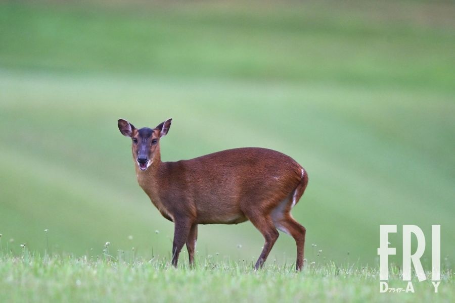 ギャアアという叫び声のような鳴き声が特徴で、シカを一回り小さくしたくらいのサイズだ。