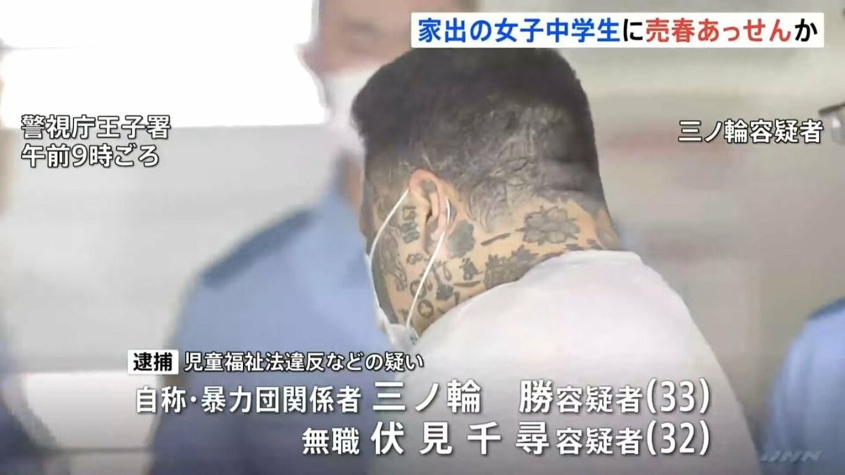 警視庁によりますと、伏見千尋容疑者と指定暴力団山口組系暴力団組員を自称する三ノ輪勝容疑者は去年、18歳未満と知りながら中学3年生の女子生徒に売春させた疑いなどがもたれています。