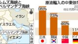 ロイター通信や日本の経済産業省によると、原油の中東依存度は日本が9割超と際だって高いが、中国や韓国も4~7割を中東に頼る。