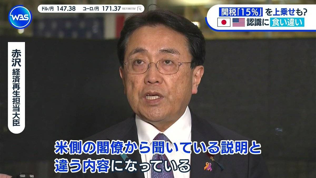 【緊急悲報】ピストン赤沢、日本の関税は15%じゃなく15%上乗せだったことが判明し焦りまくる💦