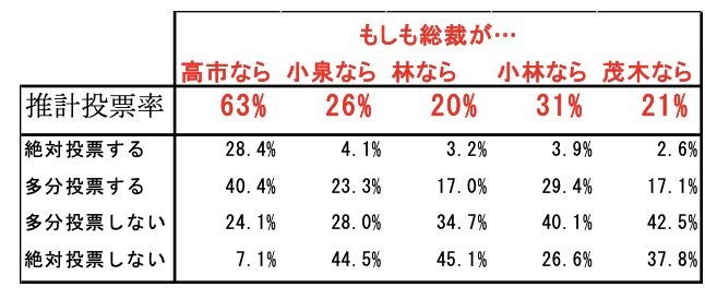 『「高市総裁」なら現自民支持者の支持が継続され、かつ、自民を離れた旧支持者が再度自民を支持し、党勢が回復することは確実と見込まれる。
