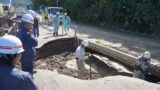 名護署によると、24日午前7時30分ごろ、県から同署に大宜味村の県道9号沿いの歩道で漏水の影響とみられる陥没が発生し、周辺を通行止めにしたと通報があった。署員が同8時ごろ、現場に駆けつけ、歩道の一部に穴が空いていたり、土砂が堆積している状況を確認したという。