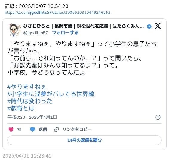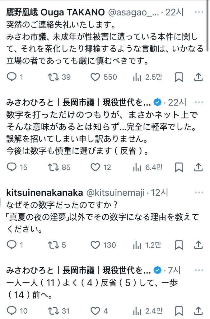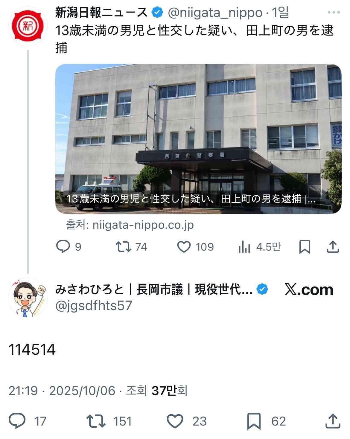 【良識崩壊国家】長岡市議 少年が性被害にあった事件の記事に『114514』と書き込みし大炎上