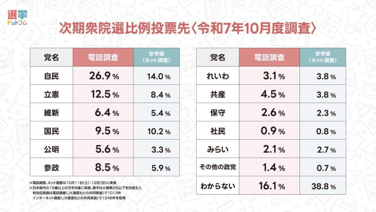 【選挙ドットコム全国世論調査】「高市シフト」で参政党・国民民主党から自民党に支持者回帰…JX通信社の米重克洋代表 「岩盤保守層といわれる層が高市氏を支持している、50代以下の若い世代の支持が高い」