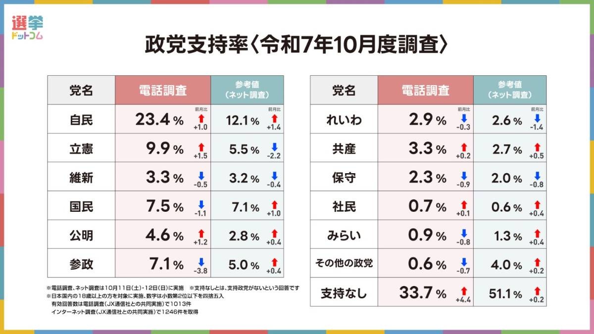 また“高市シフト”で参政党や国民民主党の支持層にも変化が…。